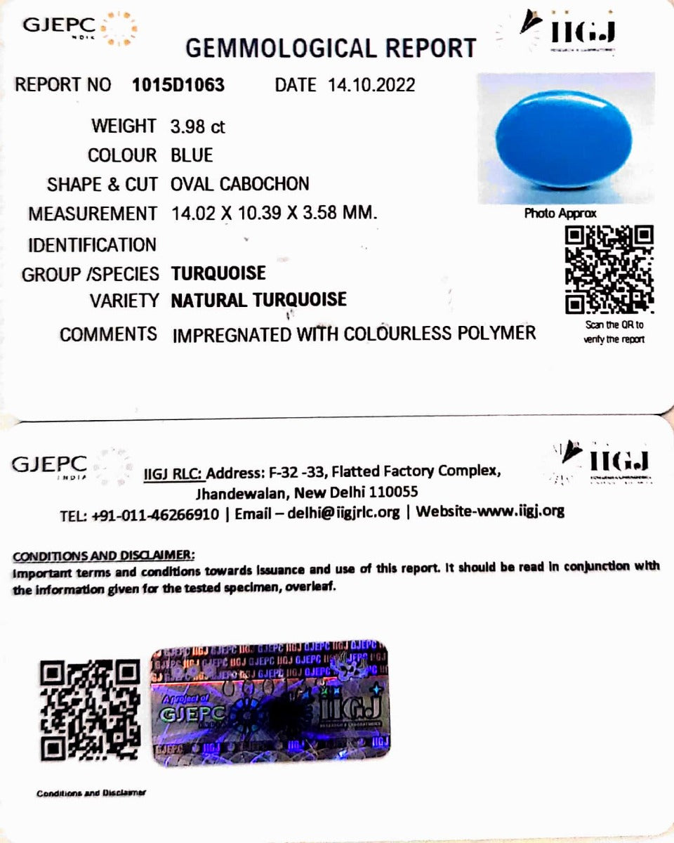 3.97/CT Natural Turquoise With Govt. Lab Certificate-1221