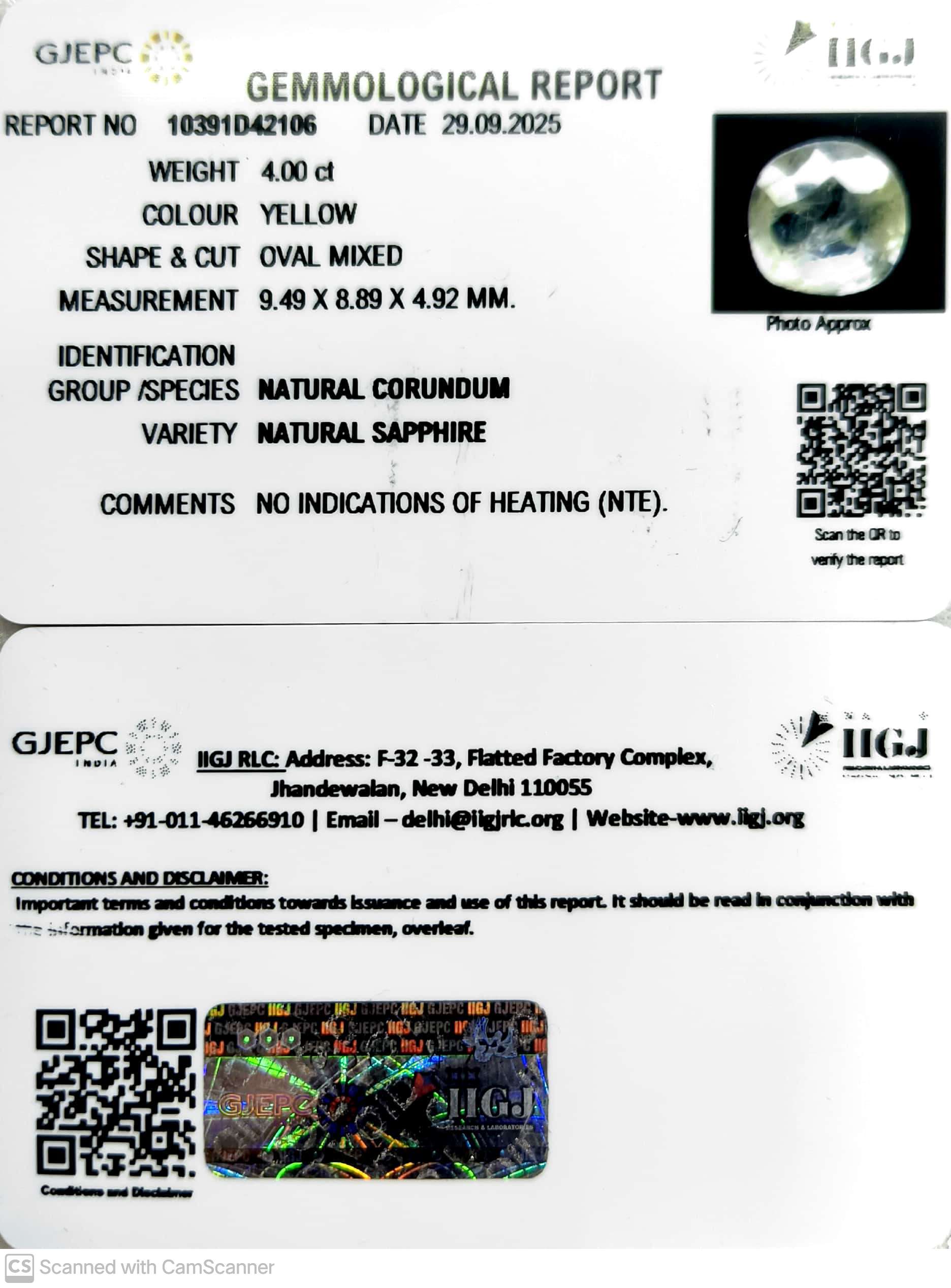 4.00/CT Natural Yellow Sapphire With Govt Lab Certificate (8991)