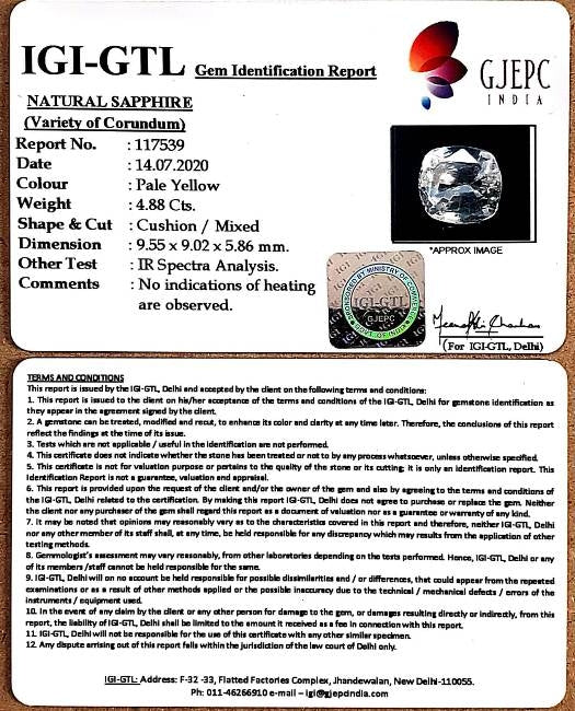 4.88/CT Natural yellow sapphire with Govt Lab Certificate-YELSA9U