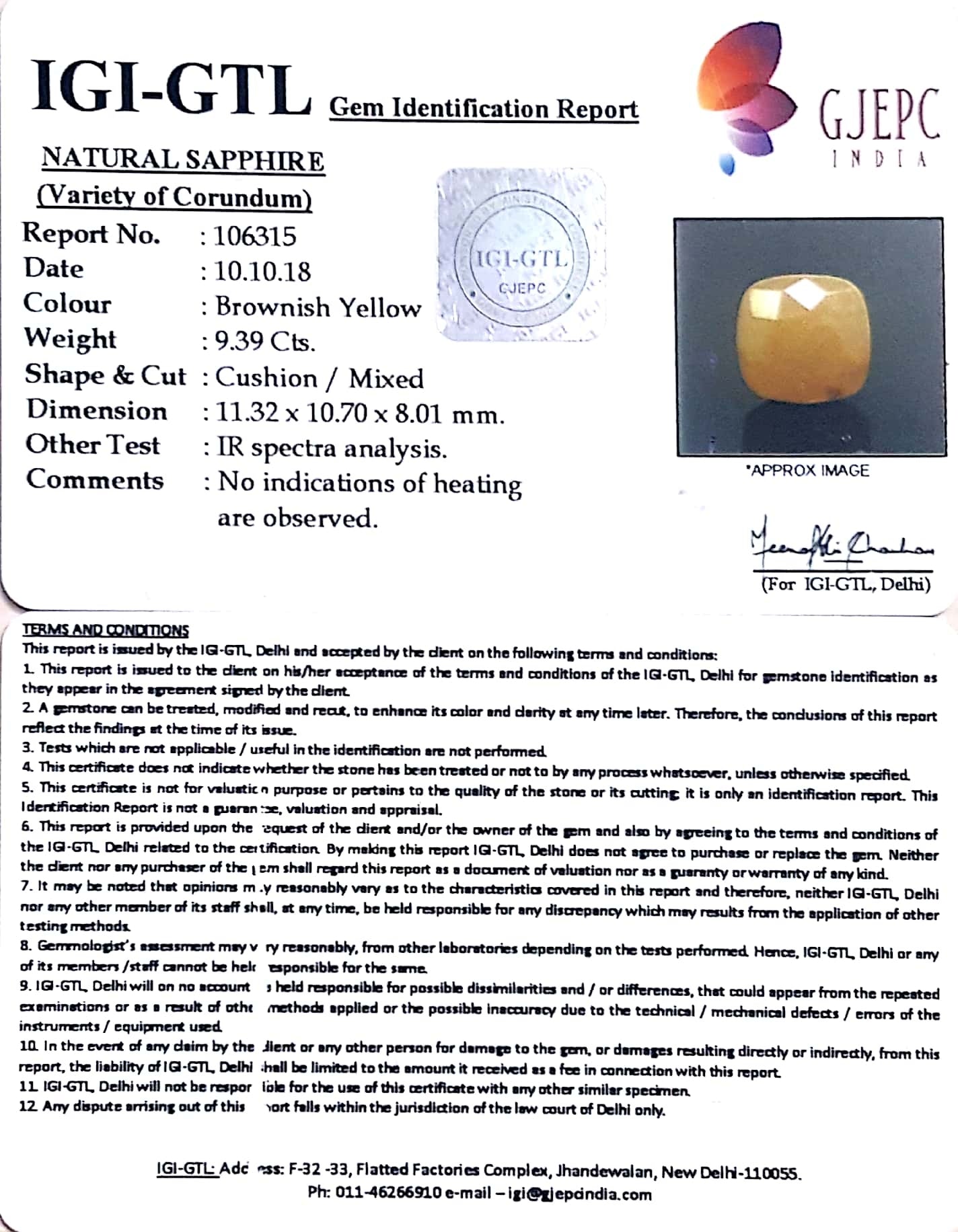 10.42/CT Natural Yellow Sapphire with Govt Lab Certificate-78810