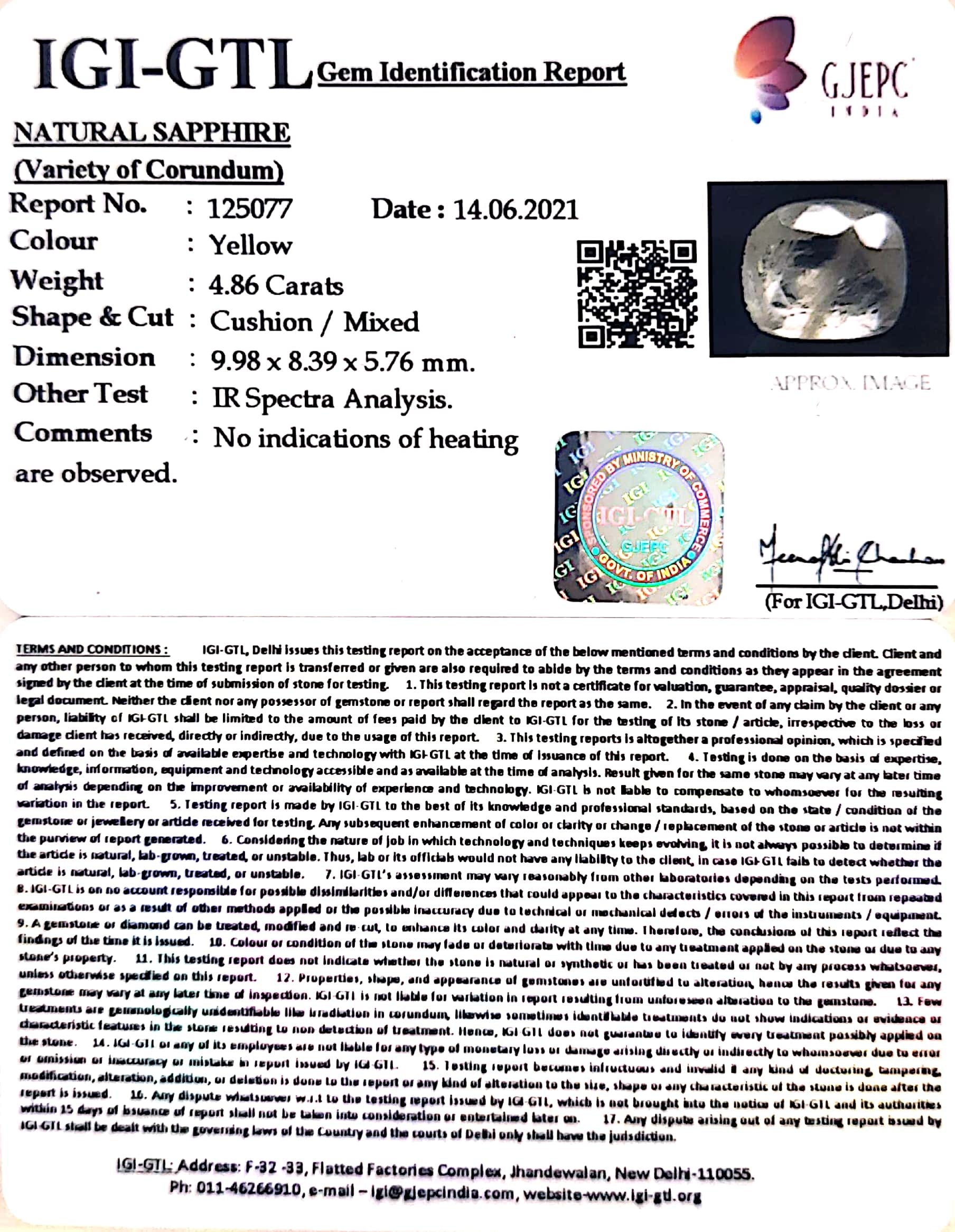 5.37 Ratti Natural yellow sapphire with Govt Lab Certificate-(6100)