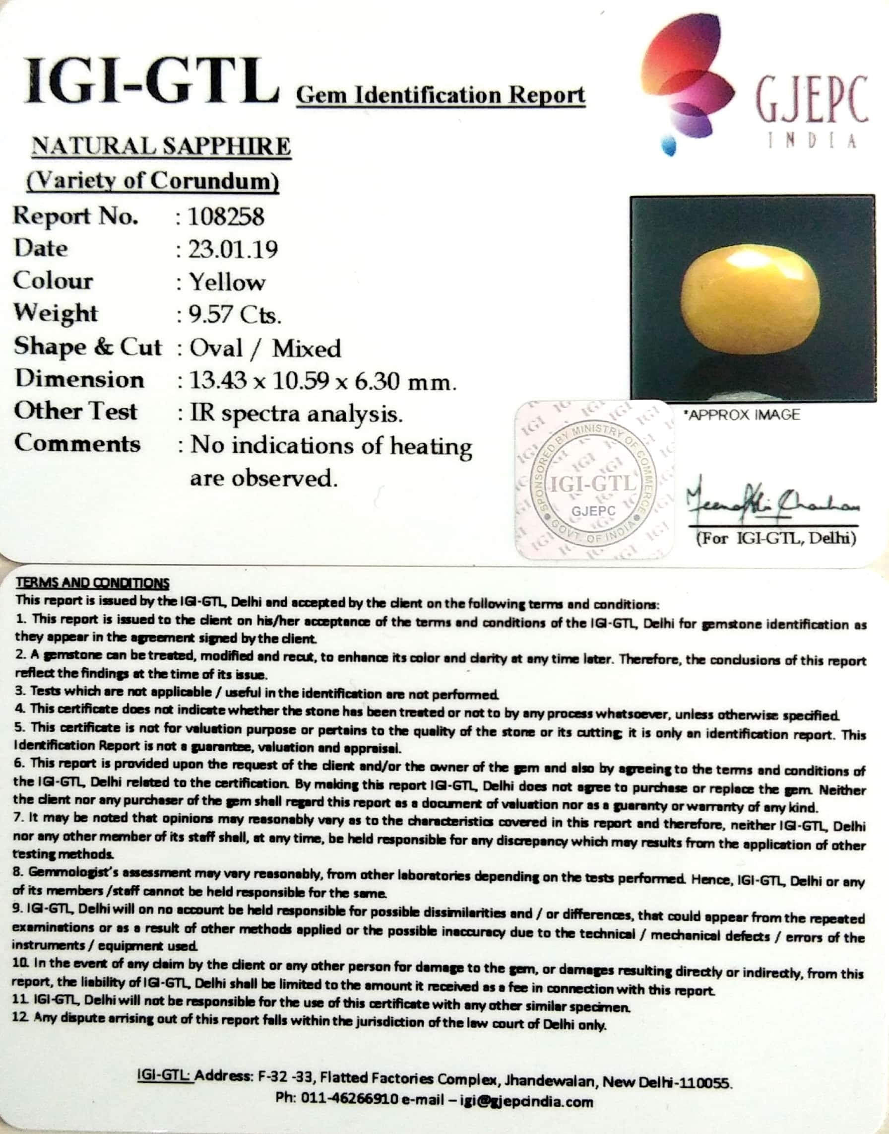 10.60/CT Natural Yellow Sapphire with Govt Lab Certificate-16650