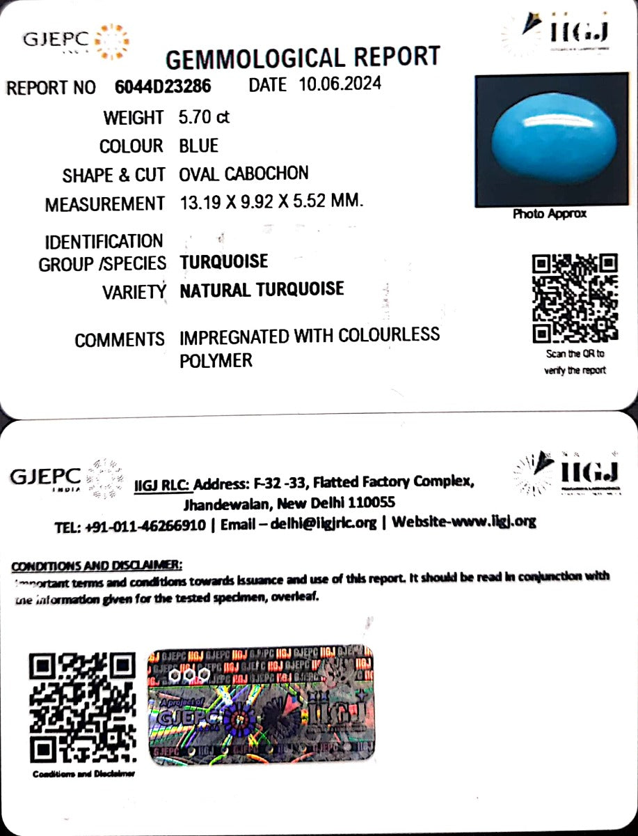 5.70/CT Natural Govt. Lab Certified Turquoise-832