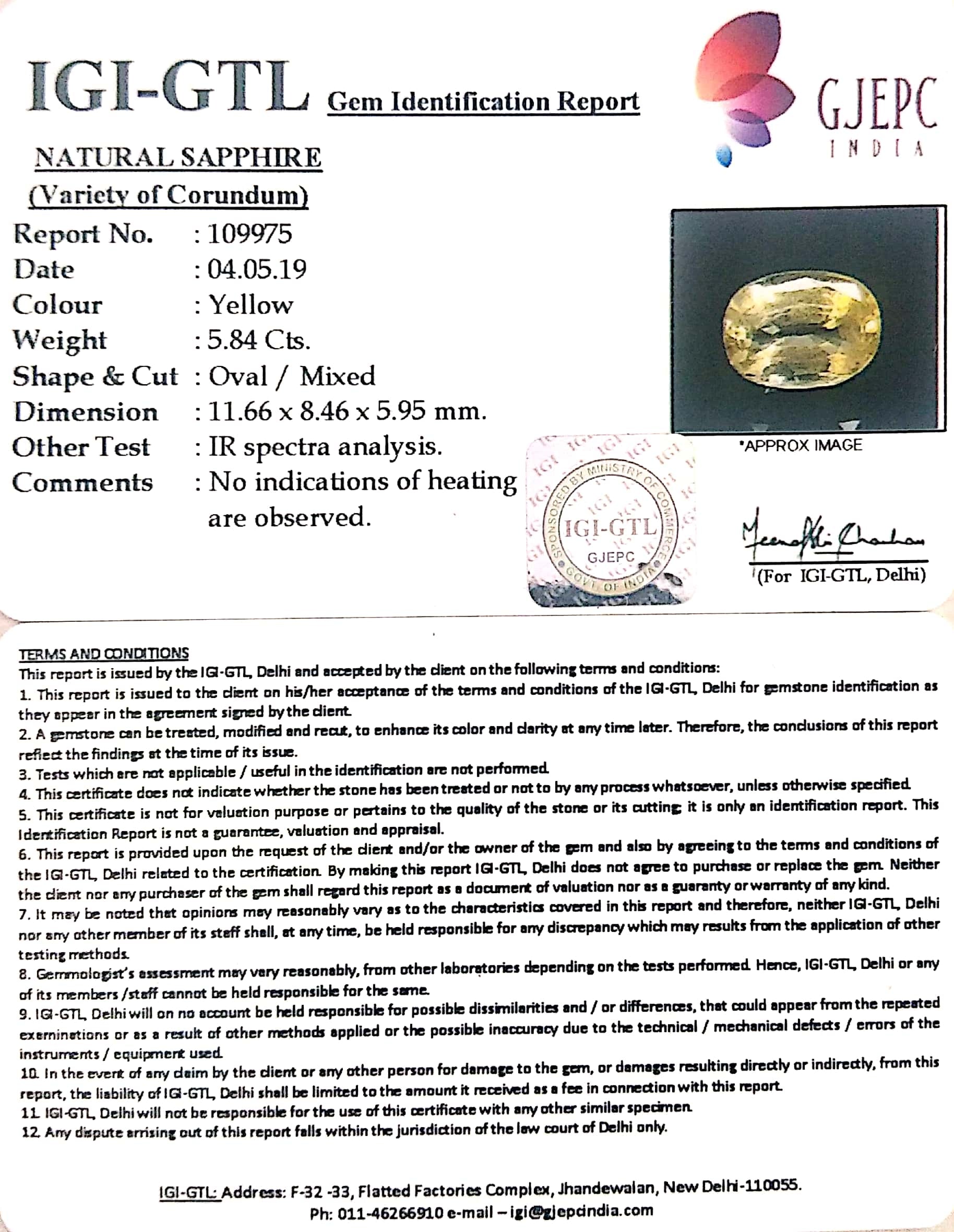5.84/CT Natural Yellow Sapphire With Govt Lab Certificate-67710