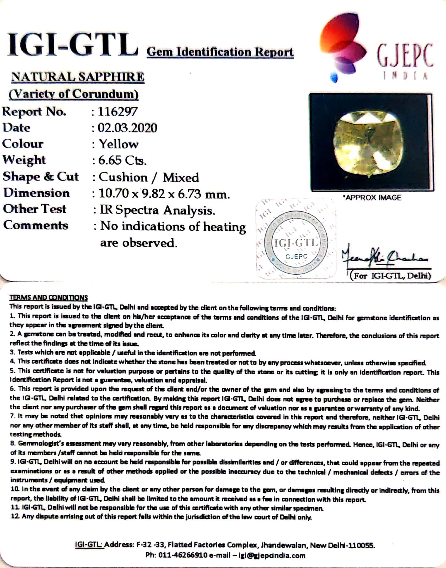 6.65/CT Natural Yellow Sapphire with Govt Lab Certificate-56610