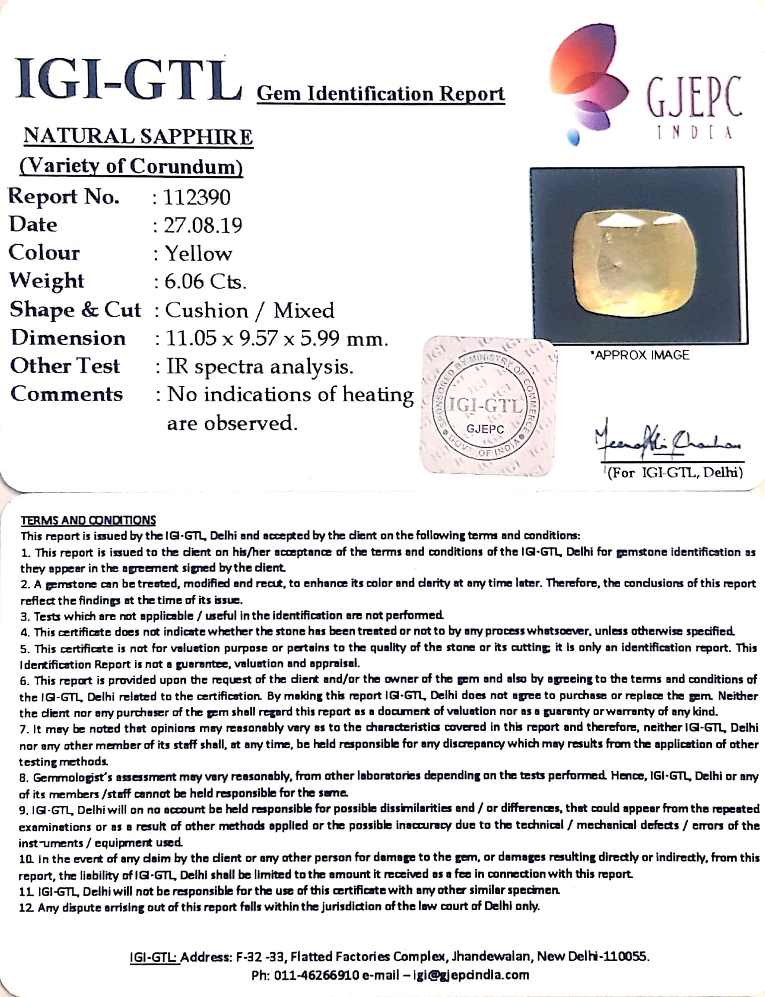 6.73 Ratti yellow sapphire with Govt Lab Certificate-(2100)