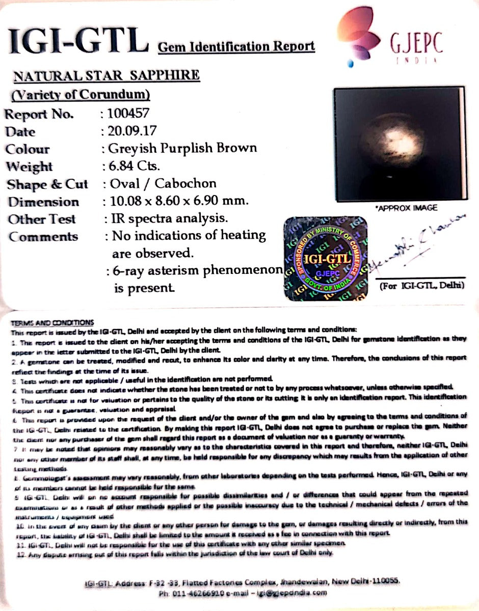 6.84/CT Star Sapphire with Govt. Lab Certificate-(5661)