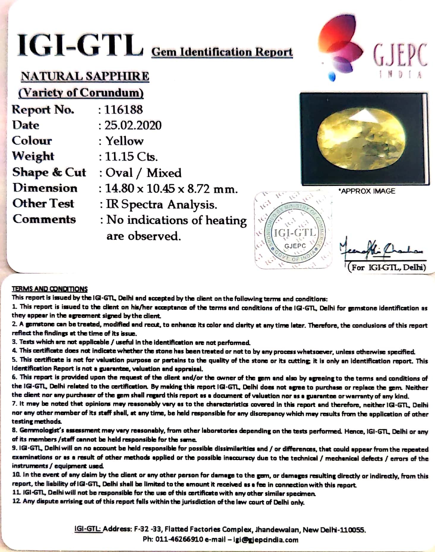 11.15/CT Natural Yellow Sapphire with Govt Lab Certificate-56610