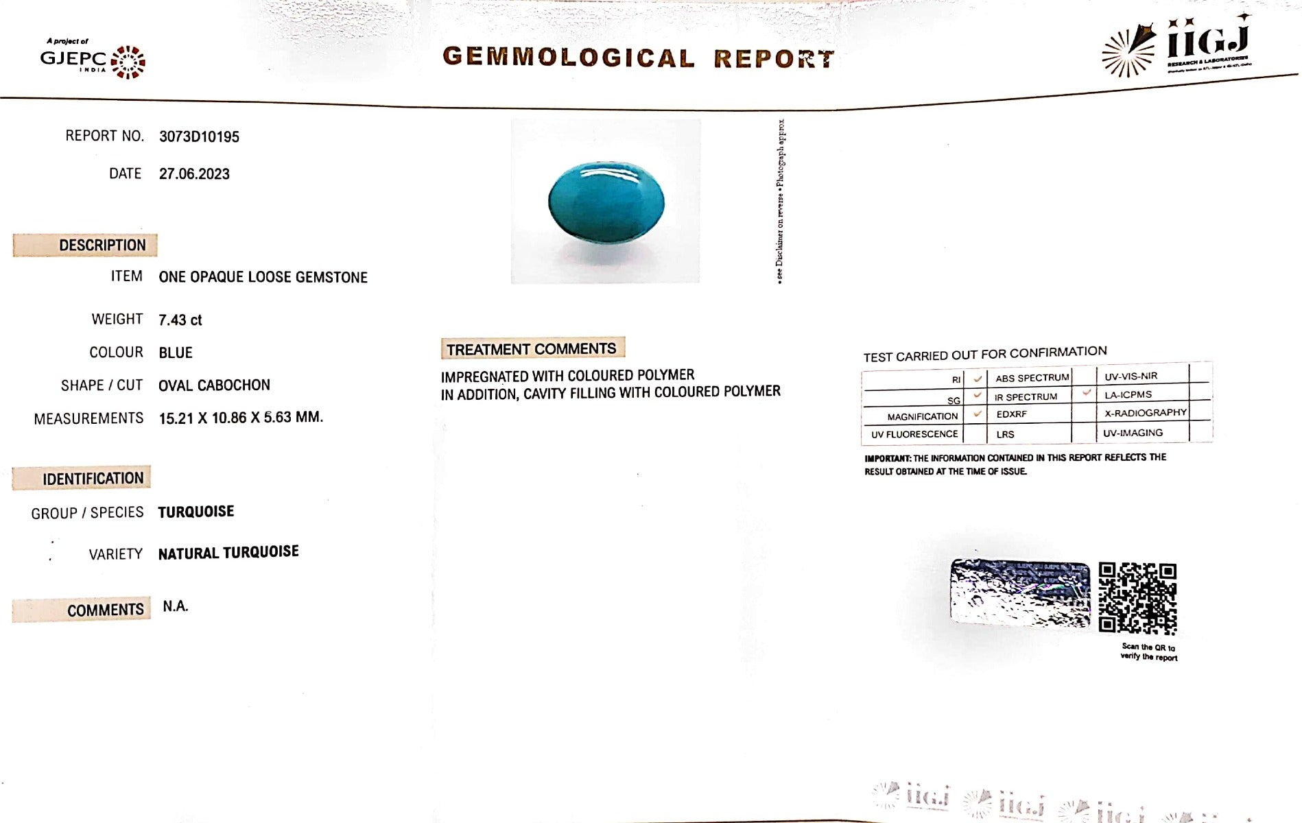7.43/CT Natural Govt. Lab Certified Turquoise-832