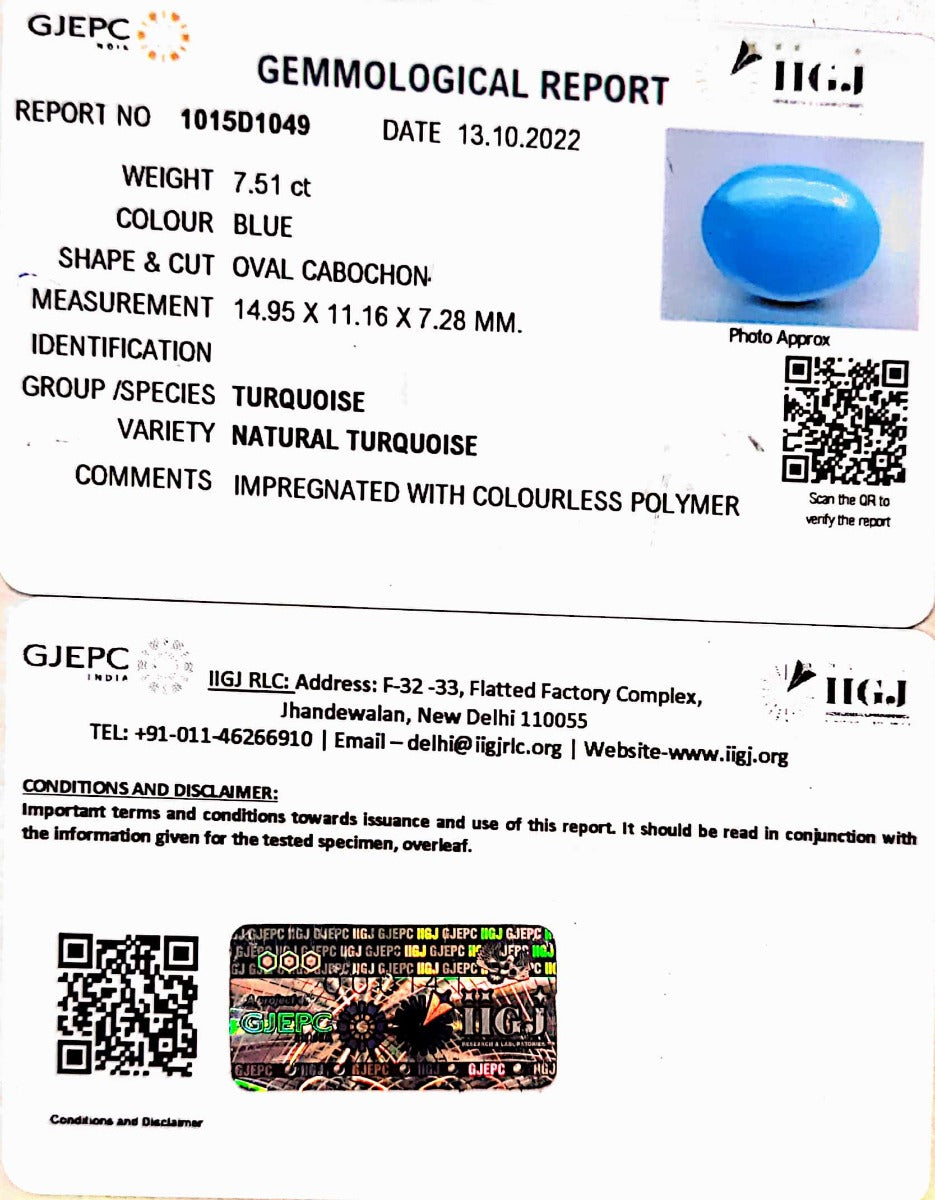 7.50/CT Natural Govt. Lab Certified Turquoise (832)