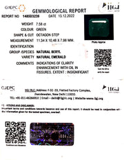 7.58/CT Natural Emerald Stone With Govt. Lab Certificate (8991)