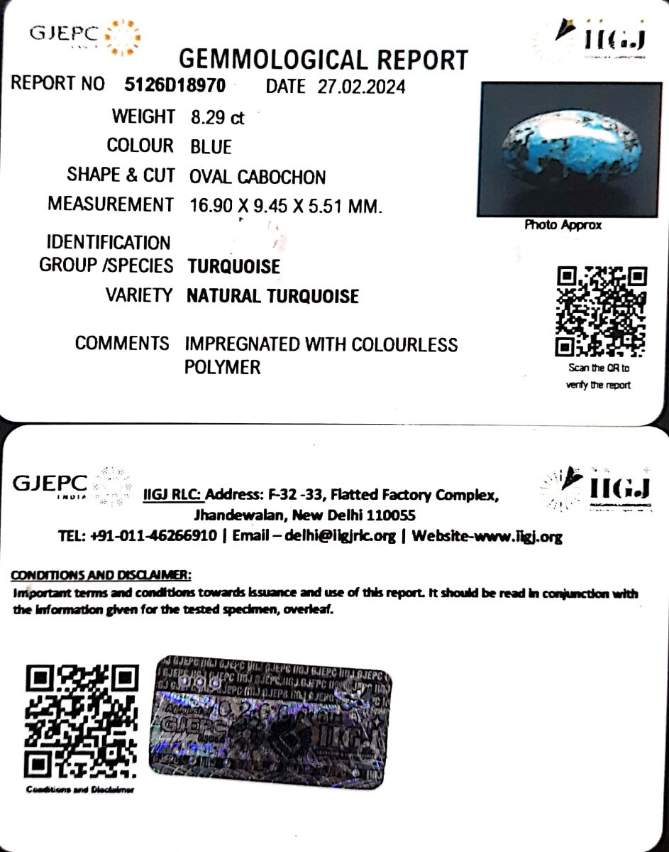 8.29/CT Natural Govt. Lab Certified Turquoise-832