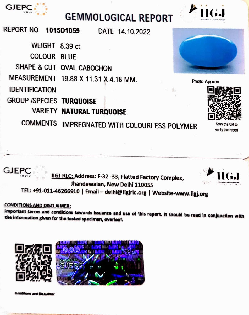8.39/CT Natural Panna Stone with Govt. Lab Certificate