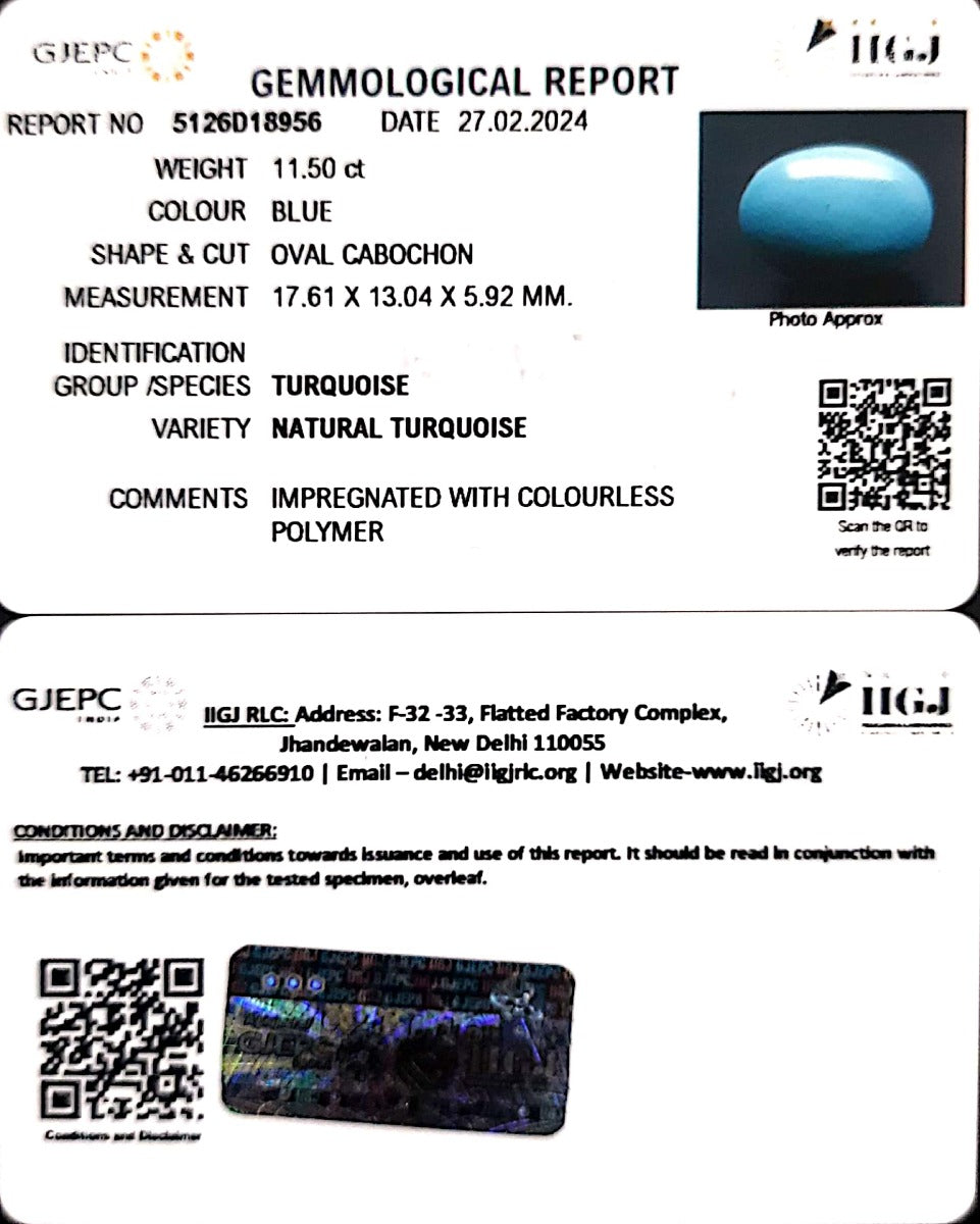 11.50/CT Natural Govt. Lab Certified Turquoise (832)