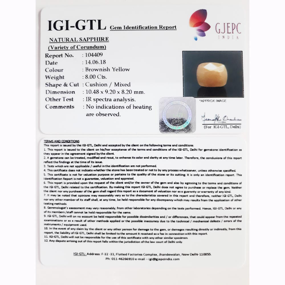 8.89 Ratti yellow sapphire with Govt Lab Certificate-(1221)