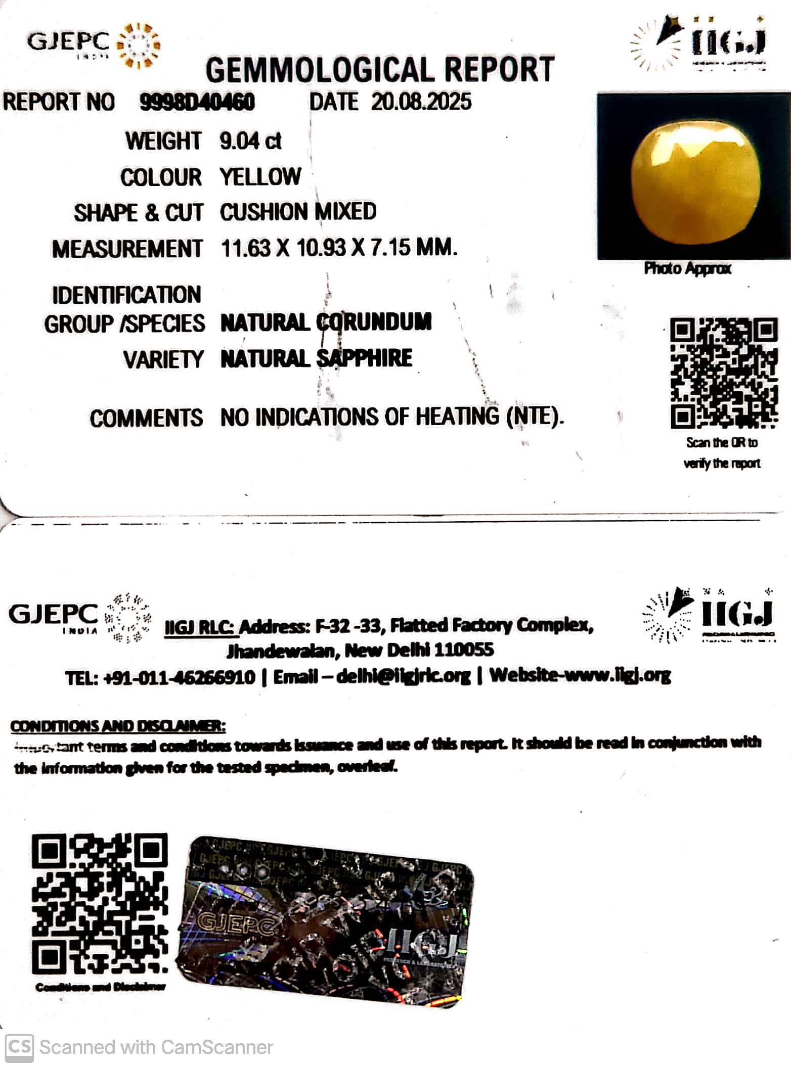 9.04 Ratti Natural yellow sapphire with Govt Lab Certificate