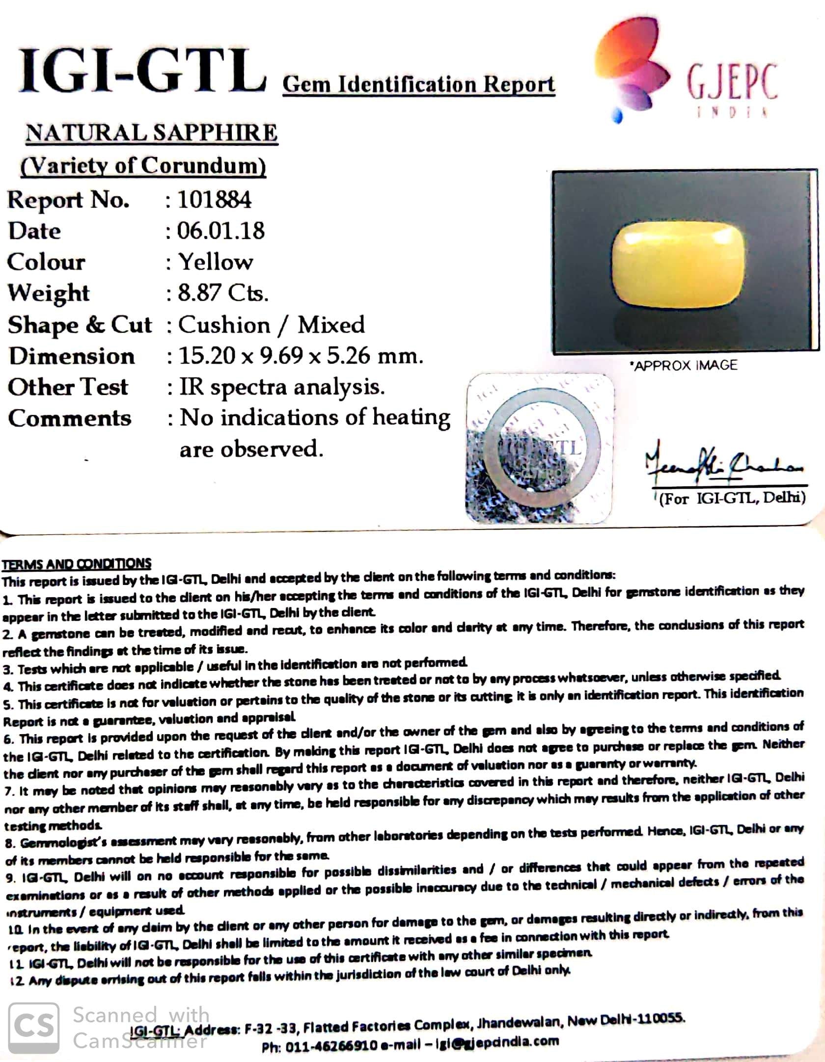 9.86 Ratti Natural Yellow Sapphire with Govt Lab Certificate-(2331)
