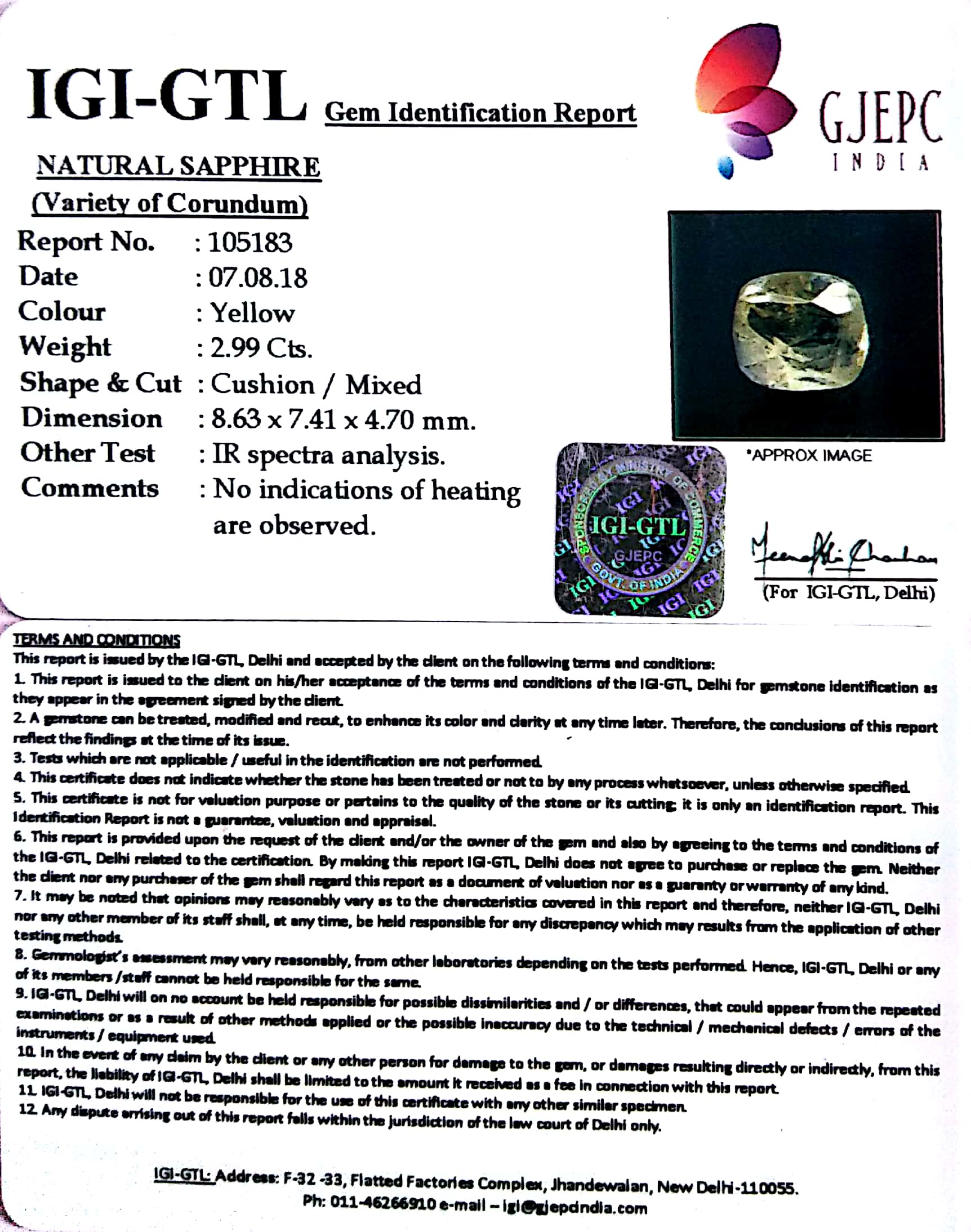 3.32 Ratti yellow sapphire with Govt Lab Certificate-(YELSA9T)