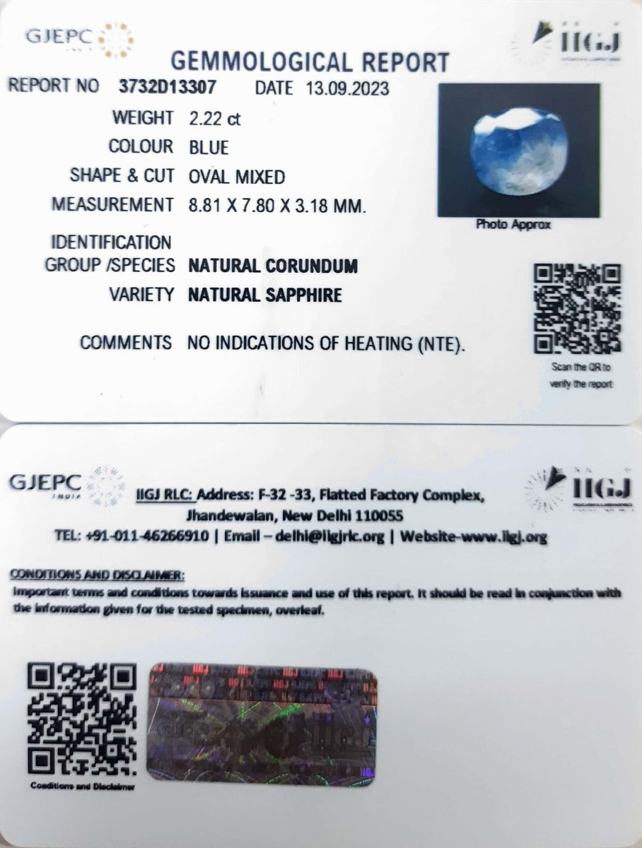 7.51/CT Natural Blue Sapphire with Govt Lab Certificate-BLUSA9T