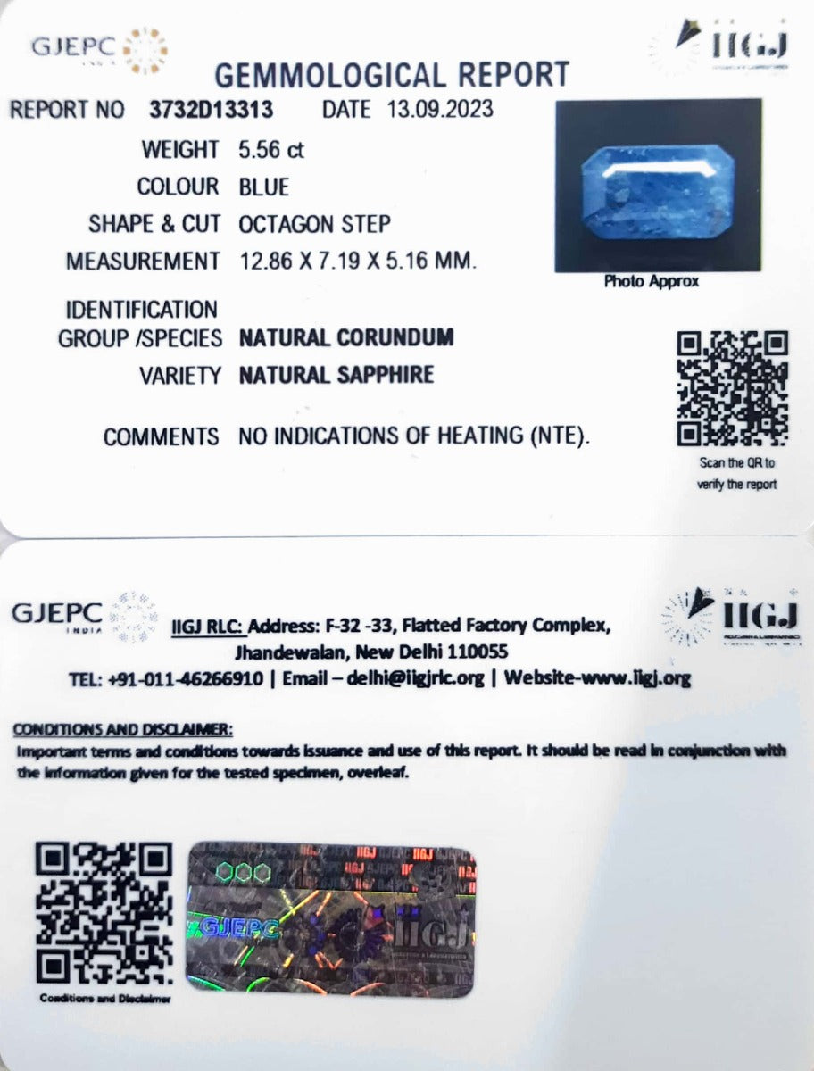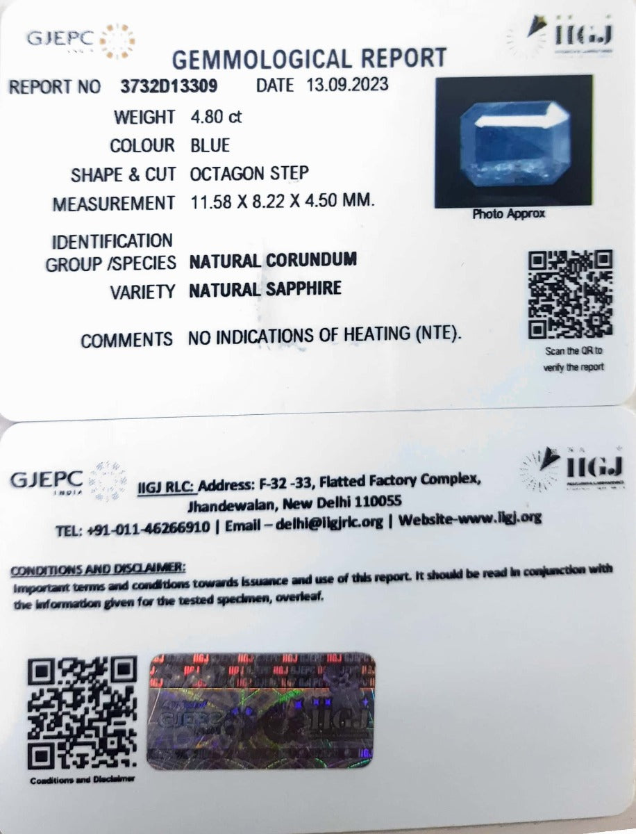 4.91/CT Natural Blue Sapphire with Govt Lab Certificate-BLUSA9U