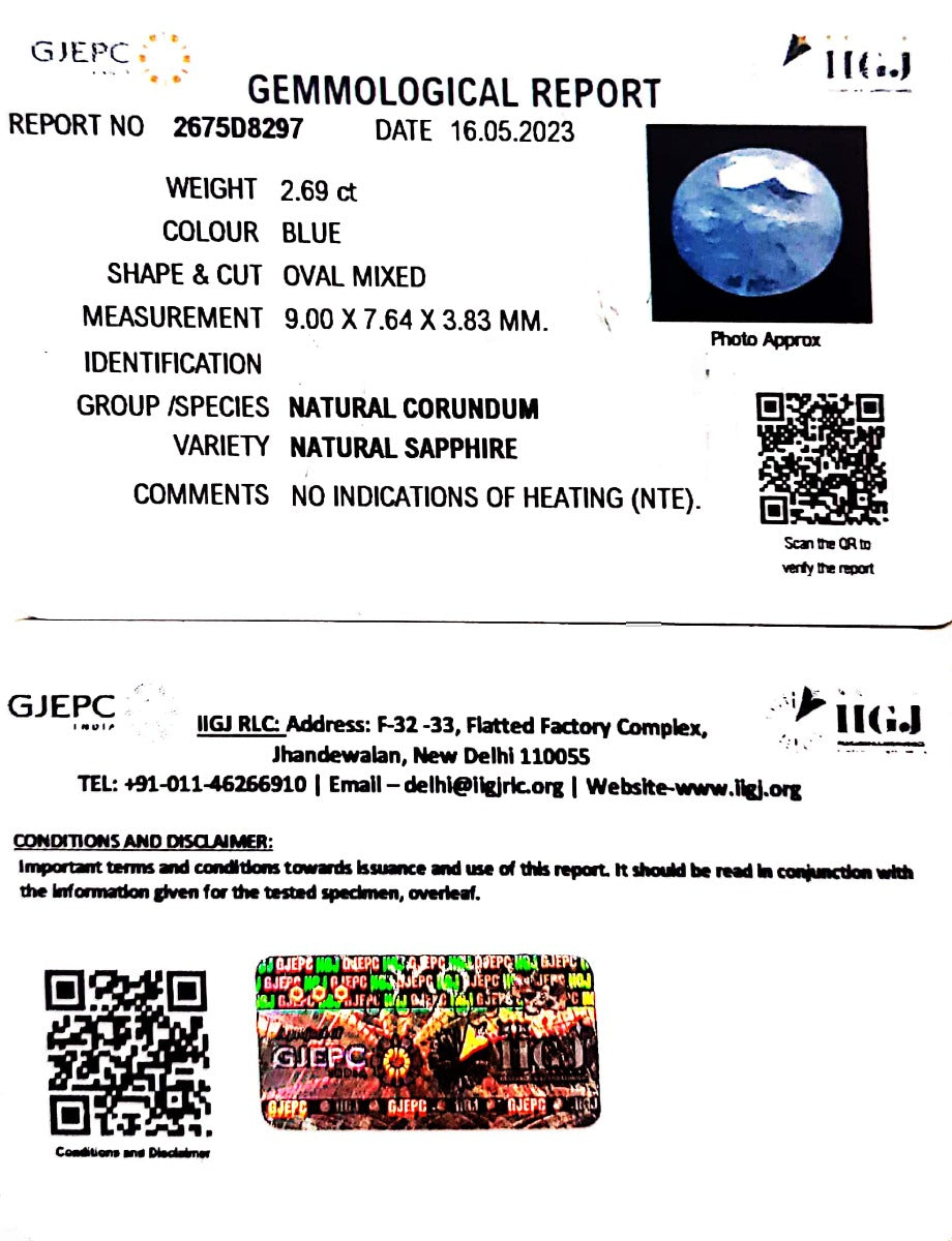 2.69/CT Natural Blue Sapphire with Govt Lab Certificate (4551)
