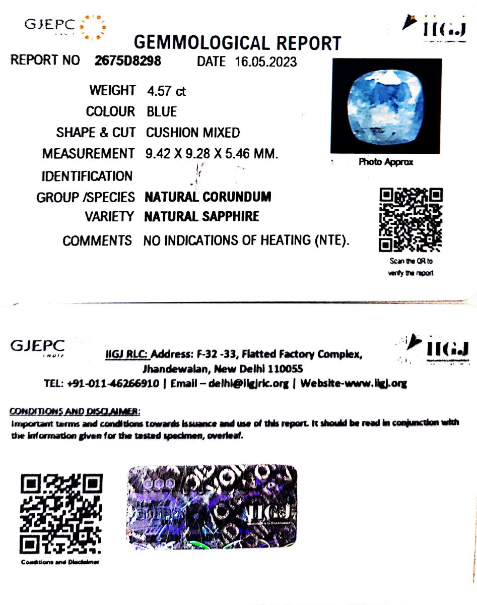 4.57/CT Natural Blue Sapphire with Govt Lab Certificate (4551)