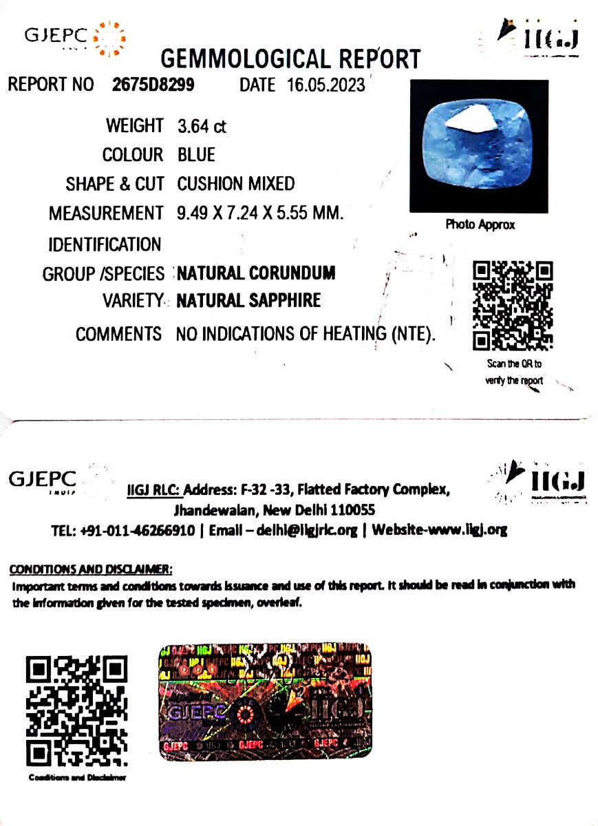 3.76/CT Natural Blue Sapphire with Govt Lab Certificate-BLUSA9S
