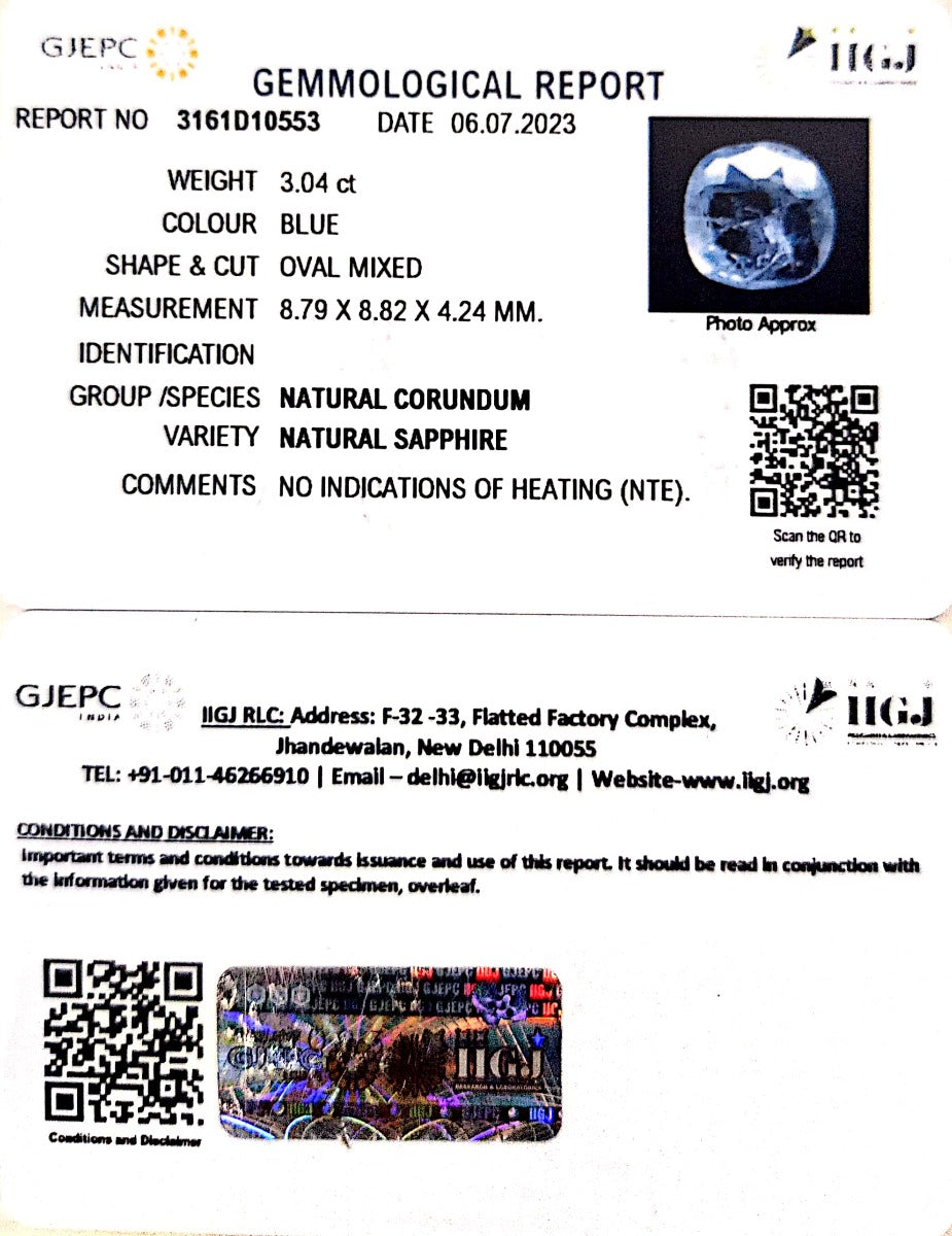 3.04/CT Natural Blue Sapphire with Govt Lab Certificate (6771)