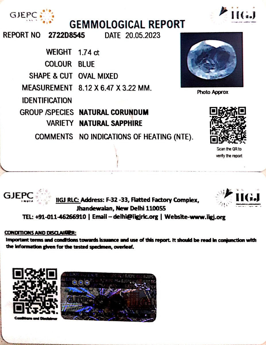 1.93/CT Natural Blue Sapphire with Govt Lab Certificate (4551)