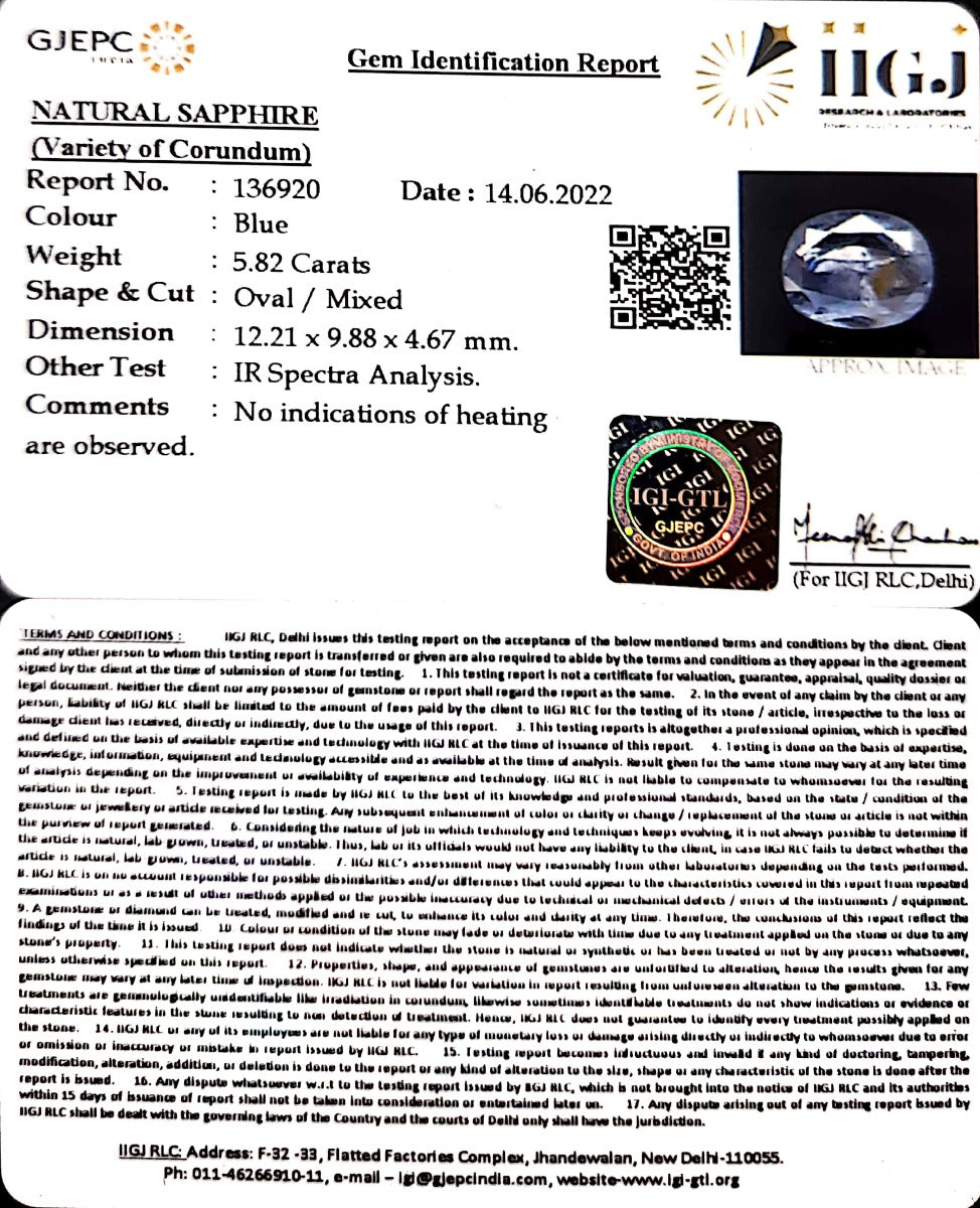 5.82/CT Natural Neelam with Govt Lab Certificate (12210)