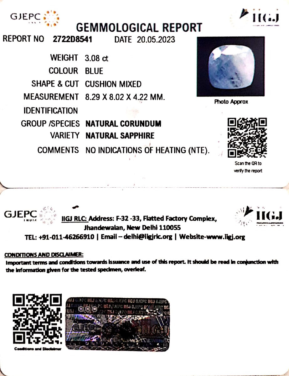 3.08/CT Natural Blue Sapphire with Govt Lab Certificate (4551)