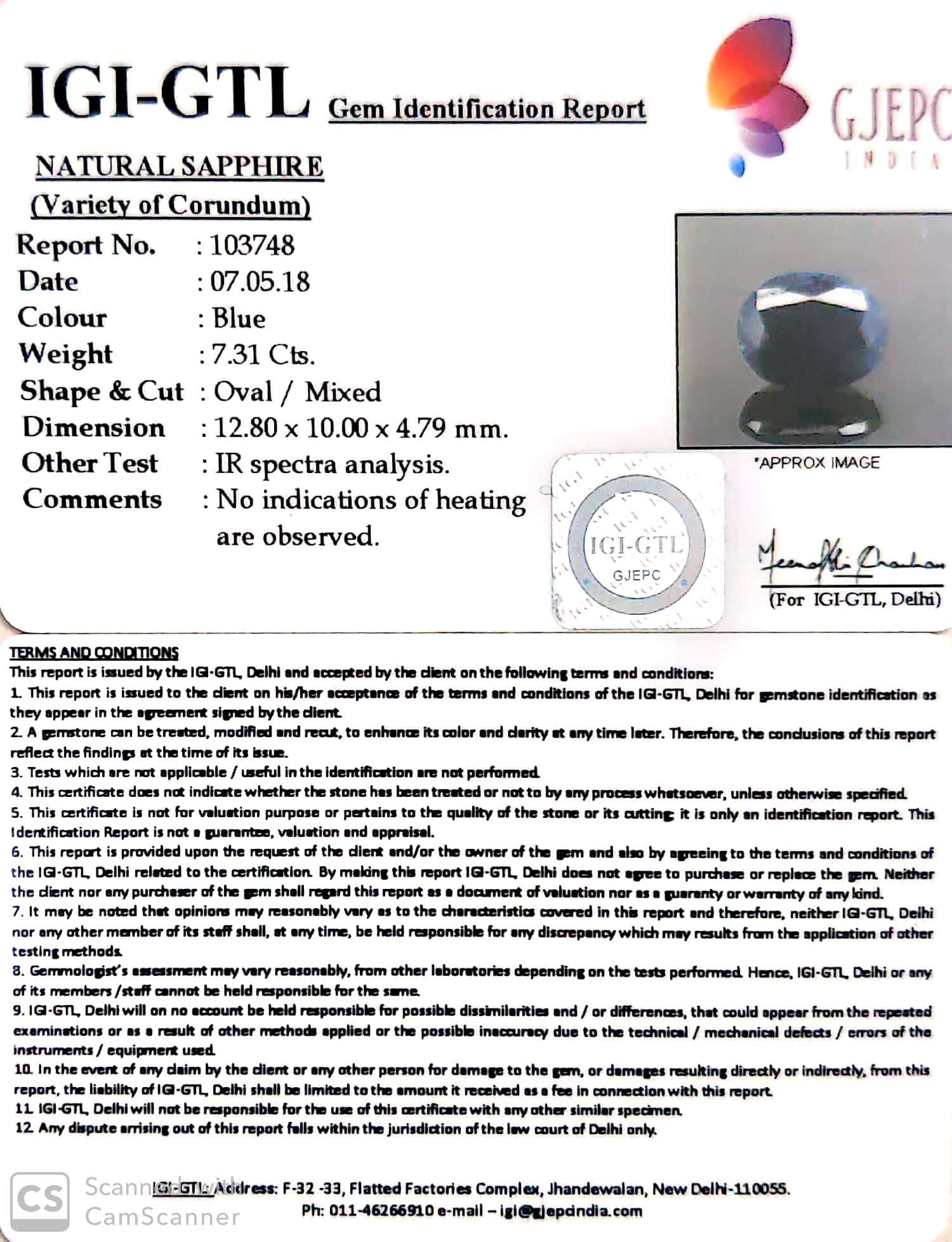 5.80/CT Natural Blue Sapphire Stone Govt Lab Certificate-BLUSA9V