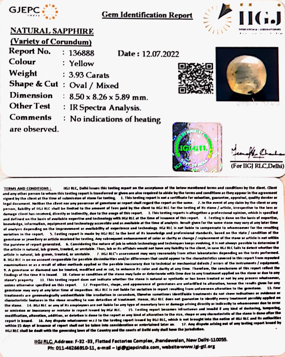 Over time, these factors make Ceylon stones a more expensive Pukhraj stone as compared to other origins. Each gemstone we provide comes with a certification that confirms its originality and natural origin.
