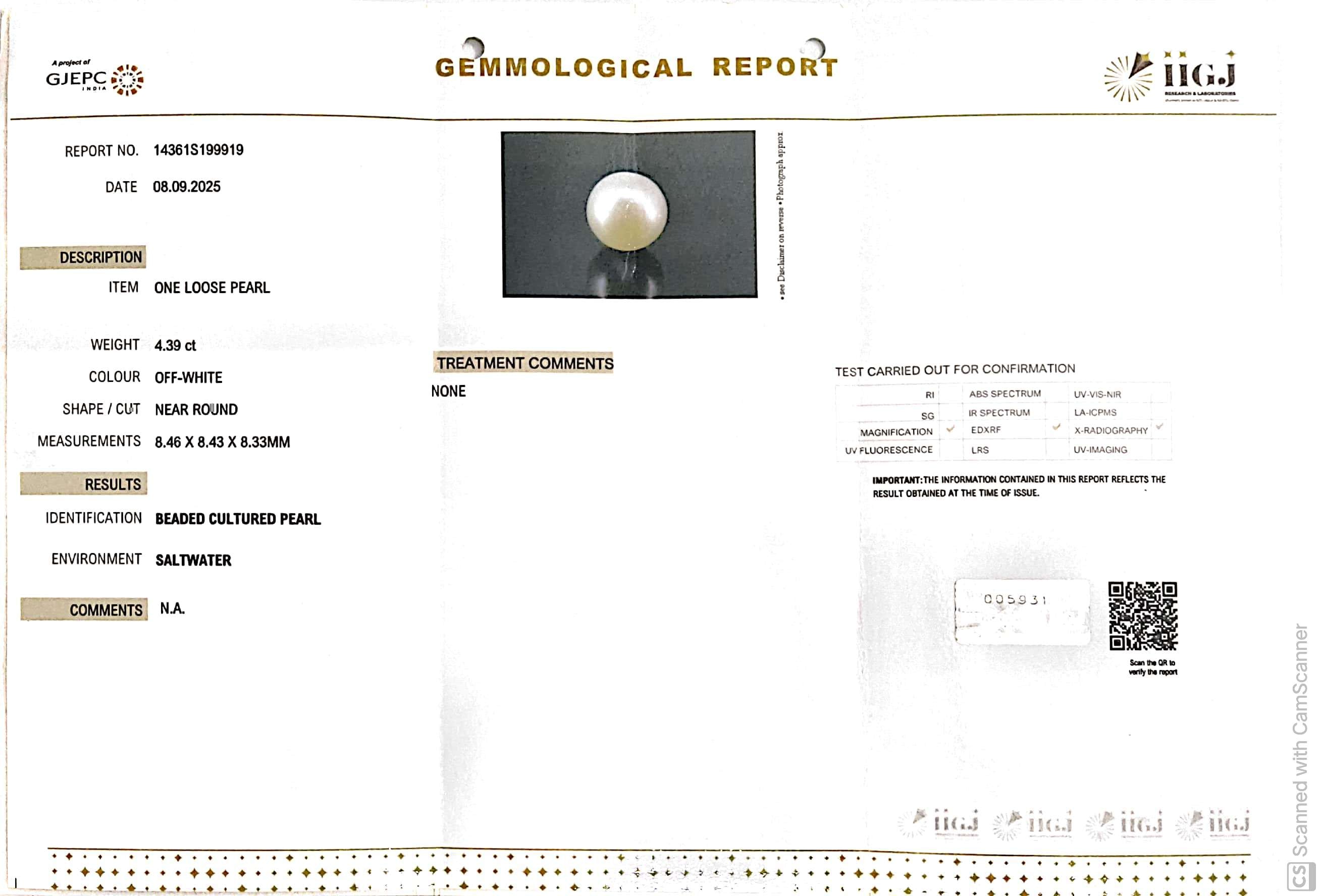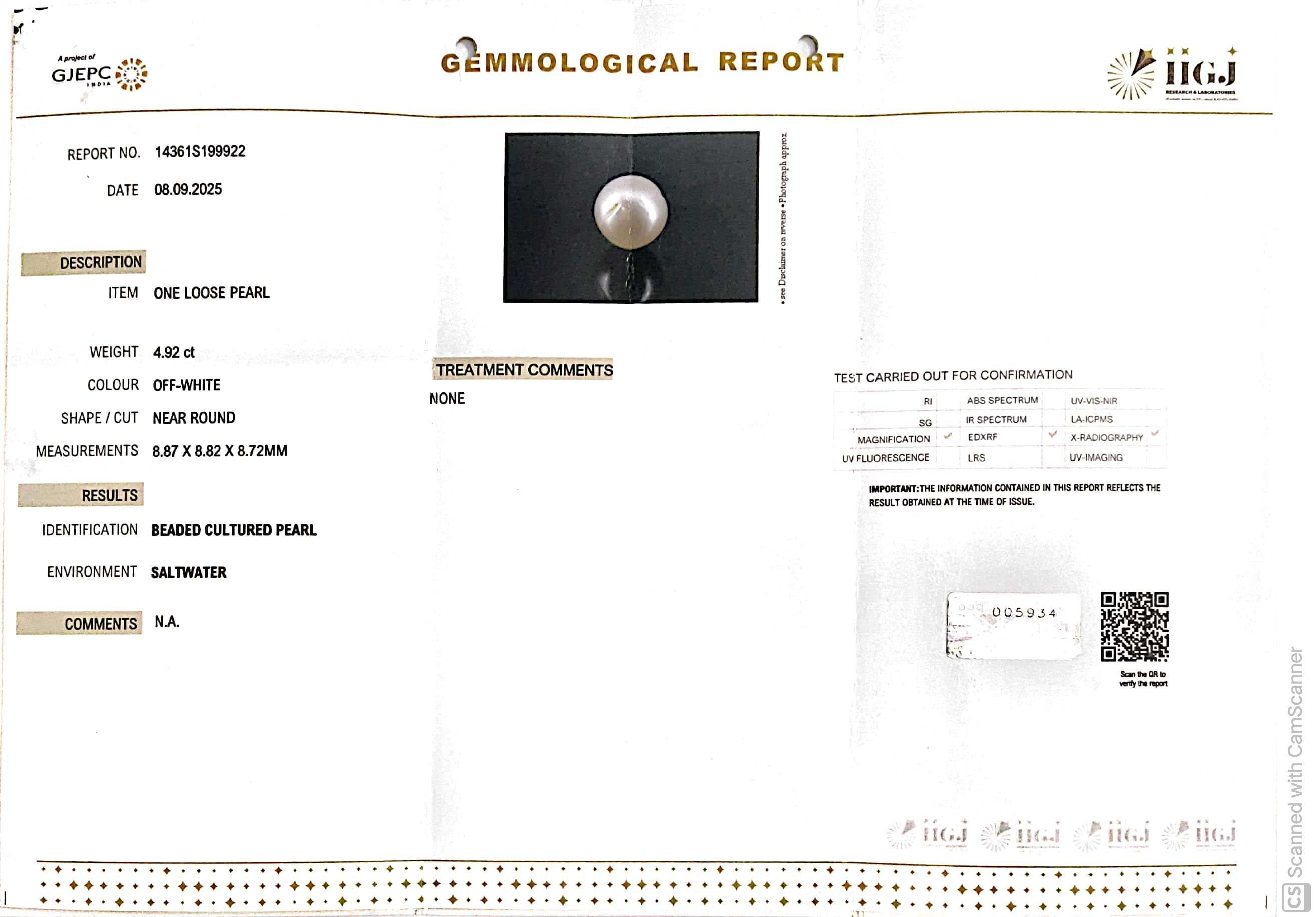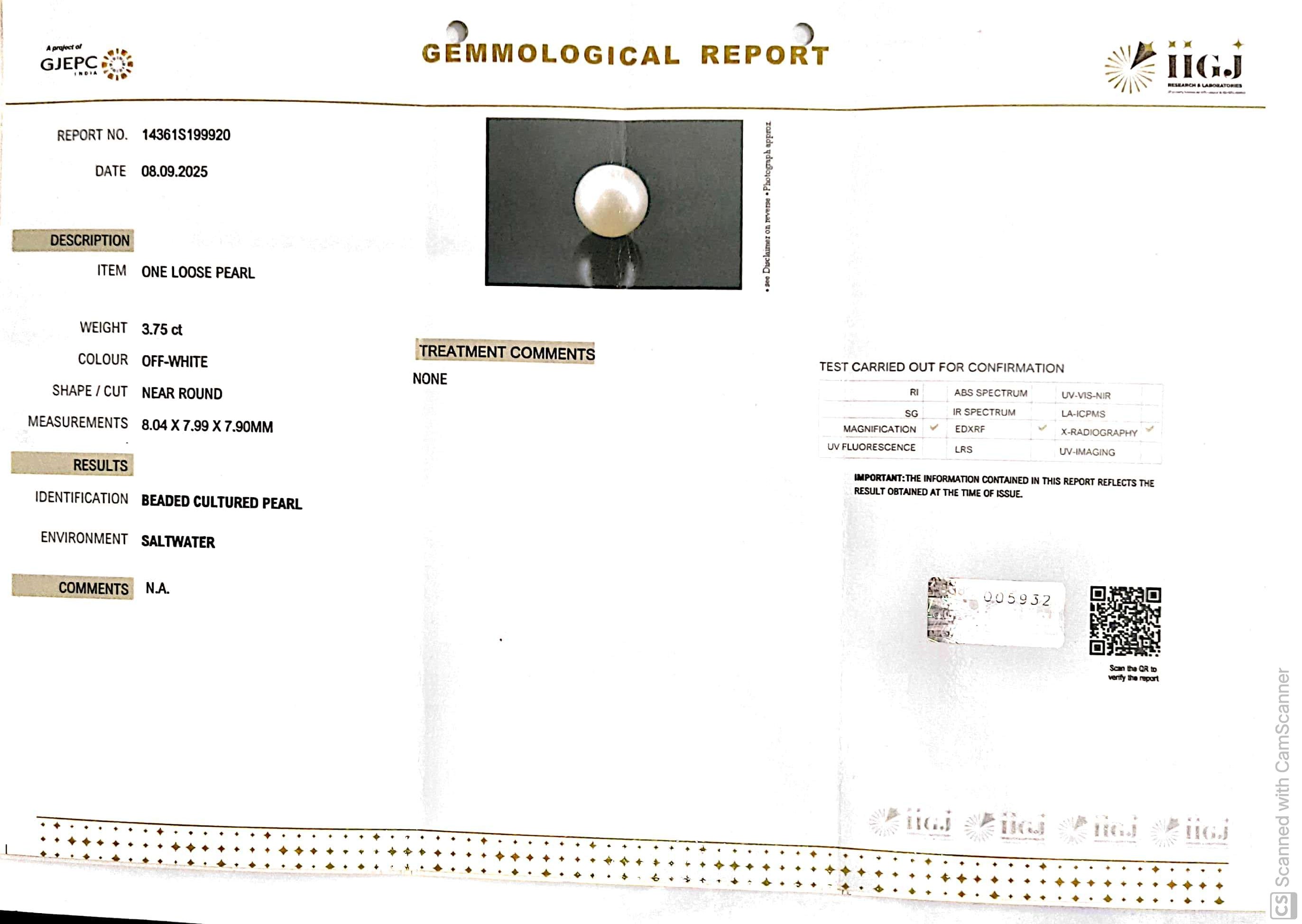 6.12/CT Natural South Sea Pearl with Govt. Lab Certificate-1550