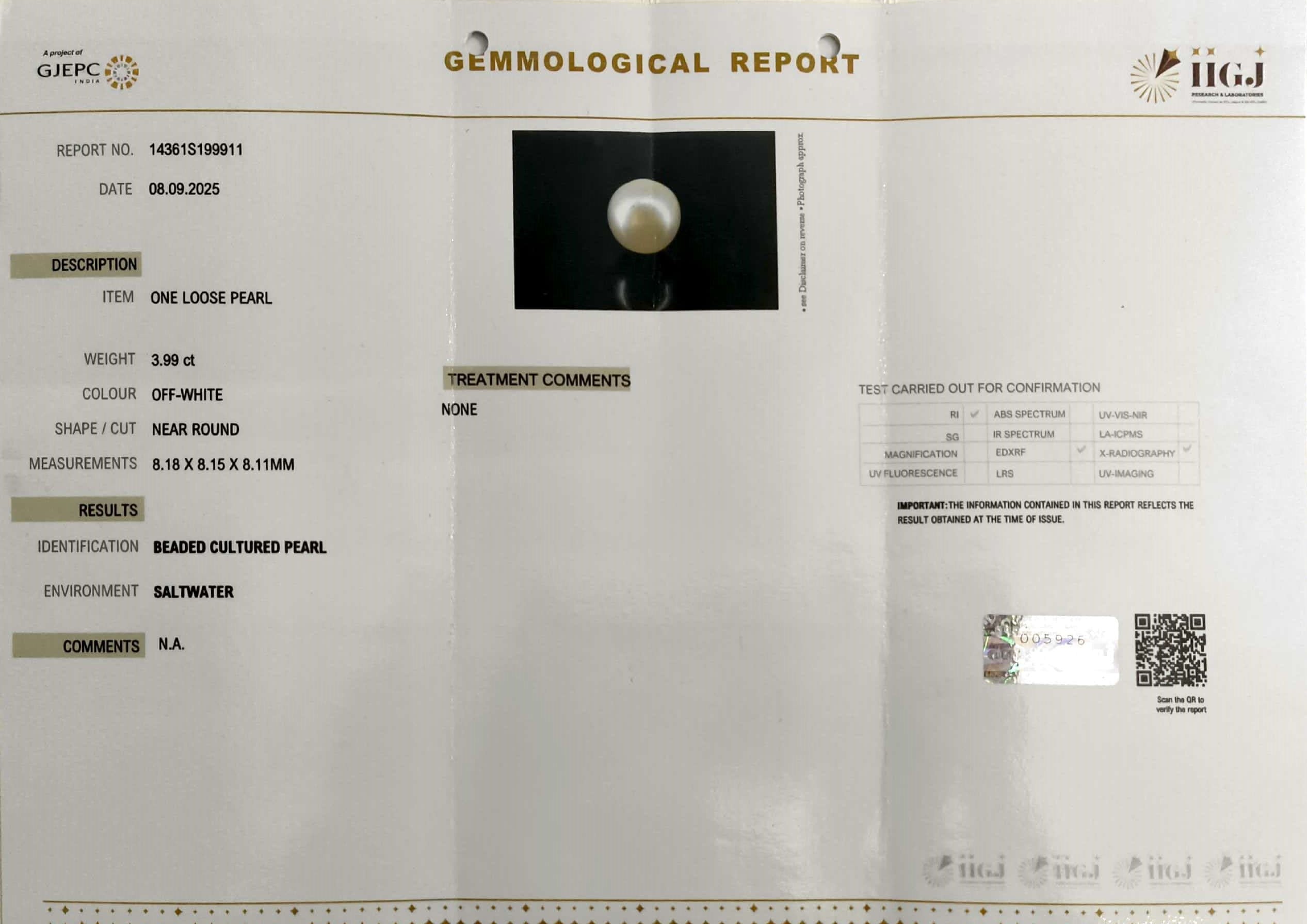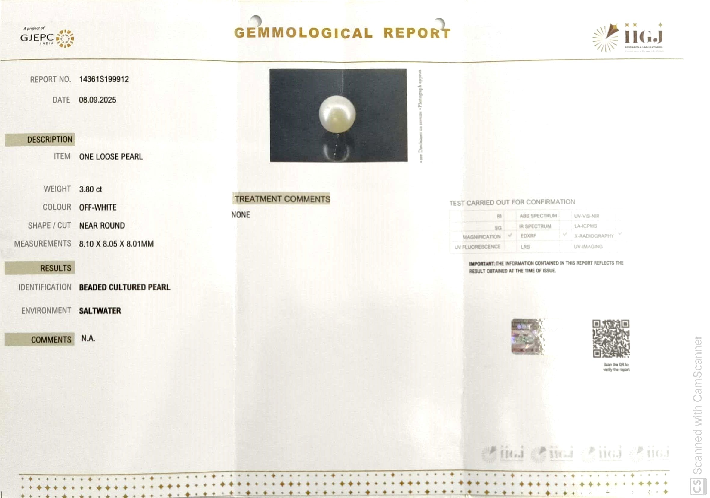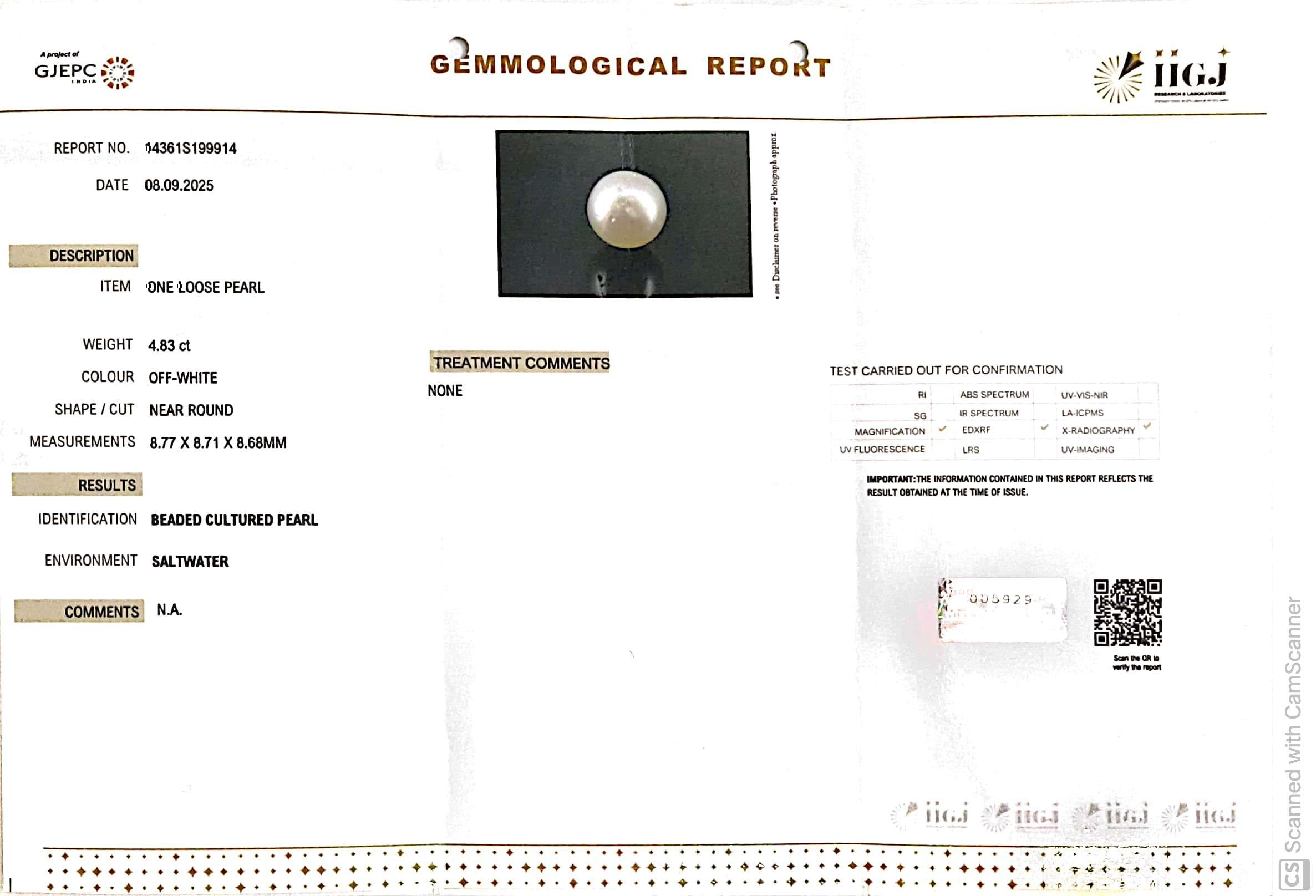 6.12/CT Natural South Sea Pearl with Govt. Lab Certificate-1550
