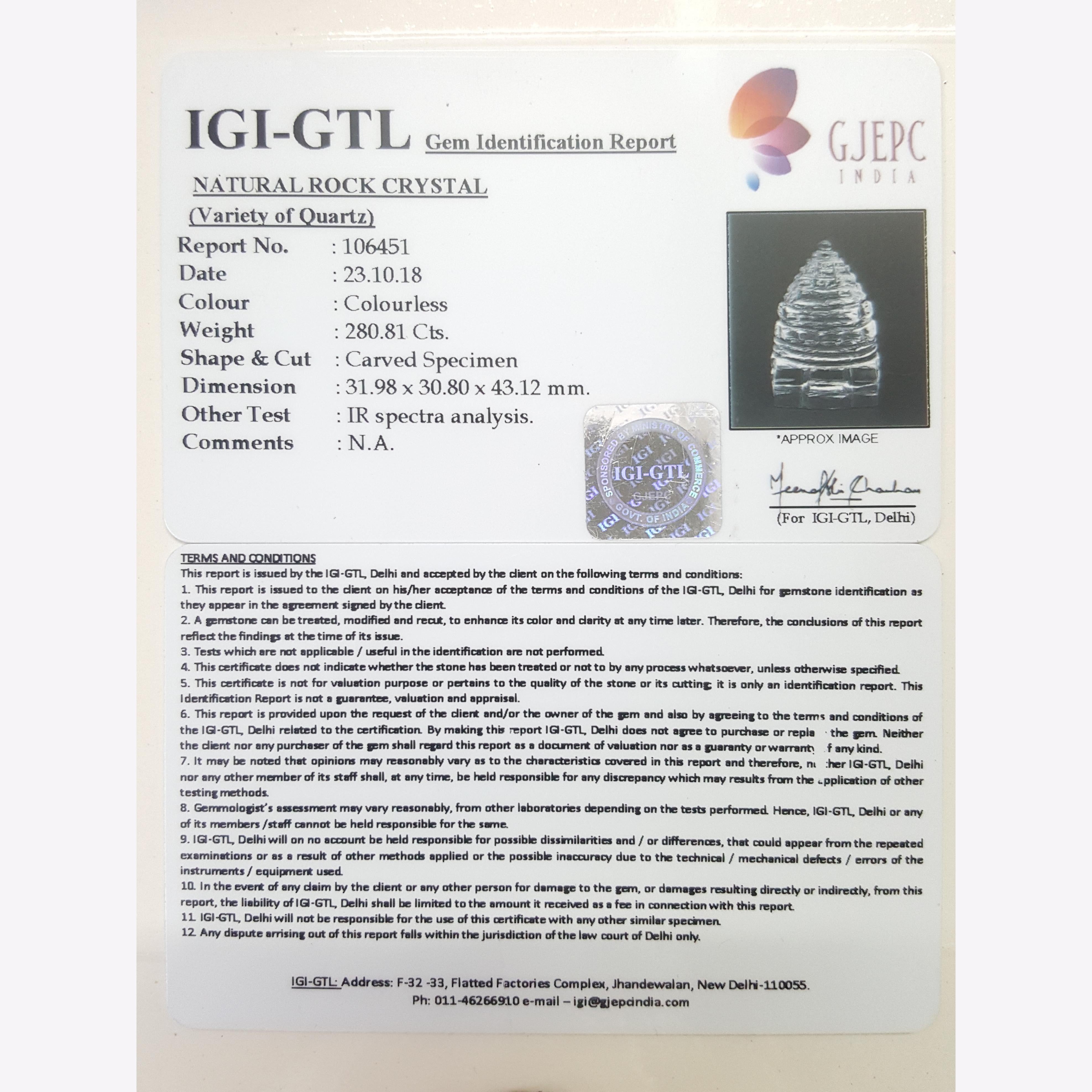 528.41/CT Sphatik Shivlinga with Govt. Lab Certificate-60