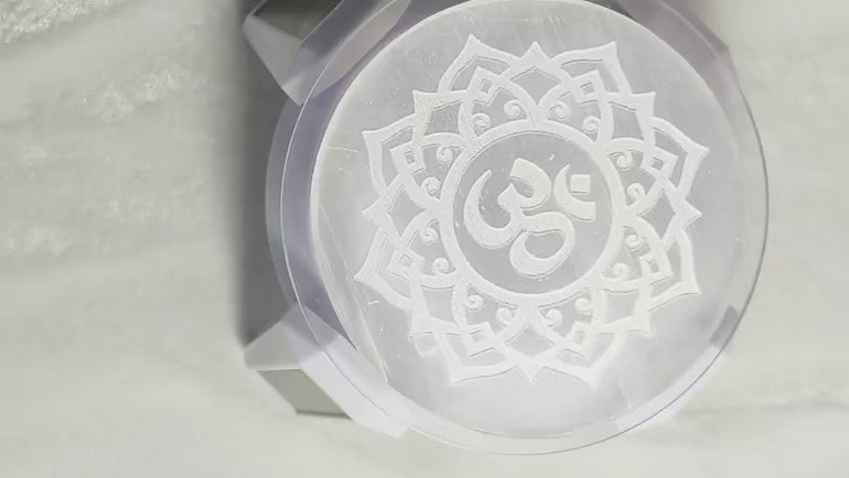 The Selenite Charging Round Plate OM 16 is a high-quality spiritual yantra designed to cleanse and recharge your crystals, gemstones, and jewelry. Made from genuine Selenite, this round plate features the sacred OM symbol, which amplifies spiritual energy and promotes peace and balance. Gem Selections offers this plate as Govt Lab Certified, ensuring authenticity and superior craftsmanship. The selenite plate effectively removes negative vibrations, revitalizing your stones and creating a calm, positive atmosphere best for meditation, healing, and daily energy renewal. Its natural self-cleansing property means it requires no extra maintenance while continuously supporting your spiritual journey and well-being. Buy today in an affordable price!