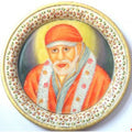 White marble plate with a beautiful hand painting of Sai Baba. The Colours used are permanent and include 24 k gold. It can be hanged from a wall or else can be placed on a table using a stand
