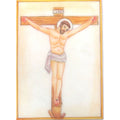 White marble tile with a beautiful hand painting of Jesus Crist. The Colours used are permanent and include 24 k gold. It can be hanged from a wall or else can be placed on a table using a stand