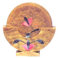 Soap stone coaster with stand beautiful inlay work is done. Very useful in the office. Can be kept in the table