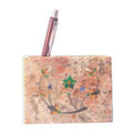 Soap stone pen stand and visiting card holder beautiful inlay work is done. Very useful in the office. Can be kept in the table
