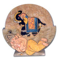 Set of six coasters with hand painting of an elephant on each piece is an exclusive work of art from the artisans of Rajasthan. A picture of sitting lord Ganesha is on the coaster holder keep it on your work or study desk.